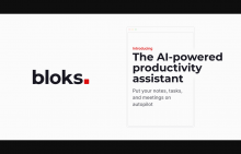 Description: Bloks is a cutting-edge productivity tool that leverages advanced Artificial Intelligence (AI) algorithms to facilitate note-taking, task management, and meeting organization. As a comprehensive productivity assistant, it enables users to capture ideas, track important tasks, and schedule meetings with ease. The tool can transcribe audio and video conversations from popular communication platforms such as Zoom, MS Teams, Google Meet, and Slack, among others, and automatically generate meeting notes and action items. Bloks also provides a bird's eye view of everything on the user's plate, eliminating the need to switch between multiple apps. With its AI-powered document drafting feature, Bloks can create emails, messages, tweets, or other documents, saving users time and effort. Whether you're working on a Mac, iOS, Android, or Google Chrome device, Bloks provides a seamless user experience tailored to your device's specifications. SHORT DESCRIPTION: Bloks is an AI-powered tool that simplifies note-taking, task management, and meeting scheduling. It transcribes audio and video conversations from various platforms and auto-generates meeting notes and action items. Users get an overview of their tasks, and can even draft emails and documents. Bloks is compatible with macOS, iOS, Android, and Google Chrome and offers enterprise-grade encryption to keep notes secure.