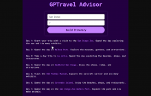 Description: GPT Travel Advisor is a cutting-edge AI tool that allows users to create travel itineraries for any city in the world in a matter of seconds. This tool uses the latest advances in Artificial Intelligence and Natural Language Processing to provide users with the best recommendations for their travel plans. With GPT Travel Advisor, you can get personalized recommendations on the best places to visit in any city, where to eat, where to stay, and what activities to do. The tool also takes into account your budget, preferences, and travel style, so that your itinerary perfectly fits your needs.