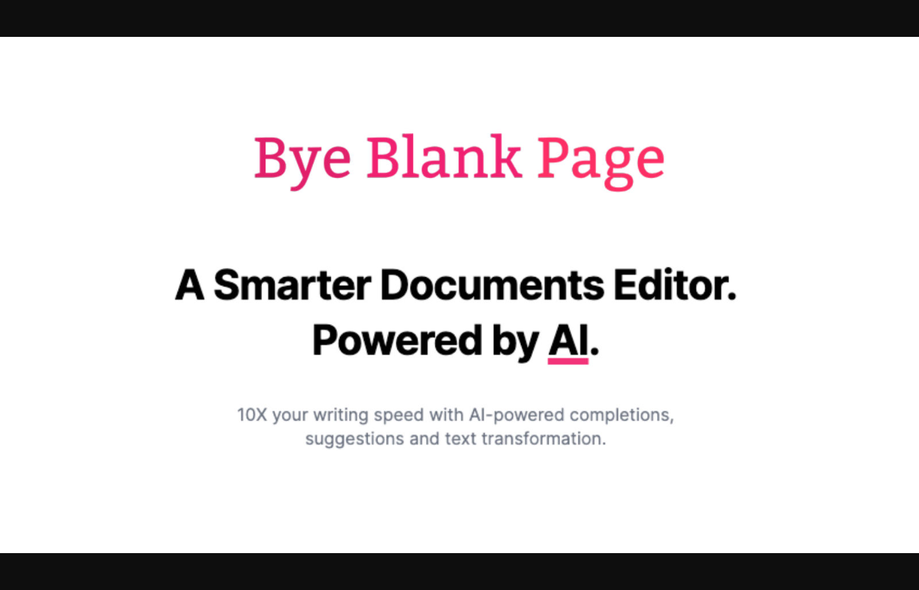 ByeBlankPage.ai is an innovative and intuitive tool that leverages the power of Artificial Intelligence to revolutionize the content creation process. It is designed to assist writers, bloggers, journalists, and students to overcome writer's block, improve their writing skills and boost their productivity. This software features advanced algorithms that can generate unique and compelling content in a snap, without compromising on quality or coherence, saving both time and effort. ByeBlankPage.ai is equipped with a plethora of tools such as Auto-Write, Smart Text Refinement, Personalized Writing Aid, and Adjustable Writing Persona that assist users in creating grammerically-correct and engaging content. SHORT DESCRIPTION: ByeBlankPage.ai is a next-generation AI-powered productivity tool that serves as a content generation and writing assistant. Its comprehensive suite of AI-driven features and capabilities includes Auto-Write, Smart Text Refinement, Personalized Writing Aid, and Adjustable Writing Persona, allowing writers to create engaging content faster and more efficiently. ByeBlankPage.ai leverages the power of Artificial Intelligence to help users overcome writer's block, eliminate tedious writing tasks, and improve their writing skills. With tailored plans designed to meet the needs of various writing goals, ByeBlankPage.ai is a must-have tool for all those seeking to enhance their writing productivity.