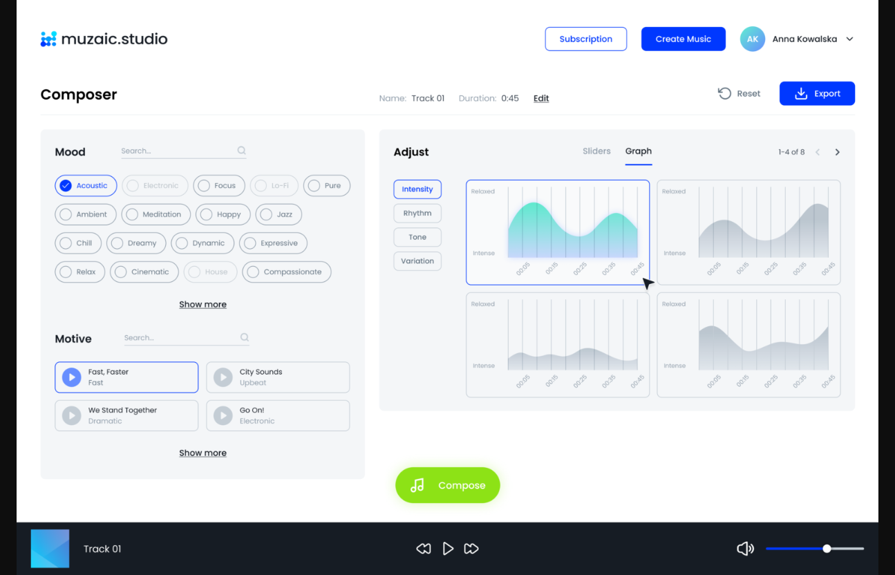 Muzaic Studio is a cutting-edge AI application specially designed for music composers and video editors. It uses advanced artificial intelligence algorithms to automatically create tailored soundtracks that perfectly match the theme, mood, tone, and rhythm of your videos. With Muzaic Studio, you can save time and skip the hassle of looking for copyright-free music online. Instead, you can focus on creating quality content without worrying about legal issues. The app offers a variety of high-quality soundtracks played and mixed by professional musicians and delivered with reliable copyrights. You can select the intensity, tempo, tone, and variations to generate personalized soundtracks that meet your expectations. The tool is available on iOS and Android, and soon on muzaic.biz, so you can create stunning videos with great music on the go.