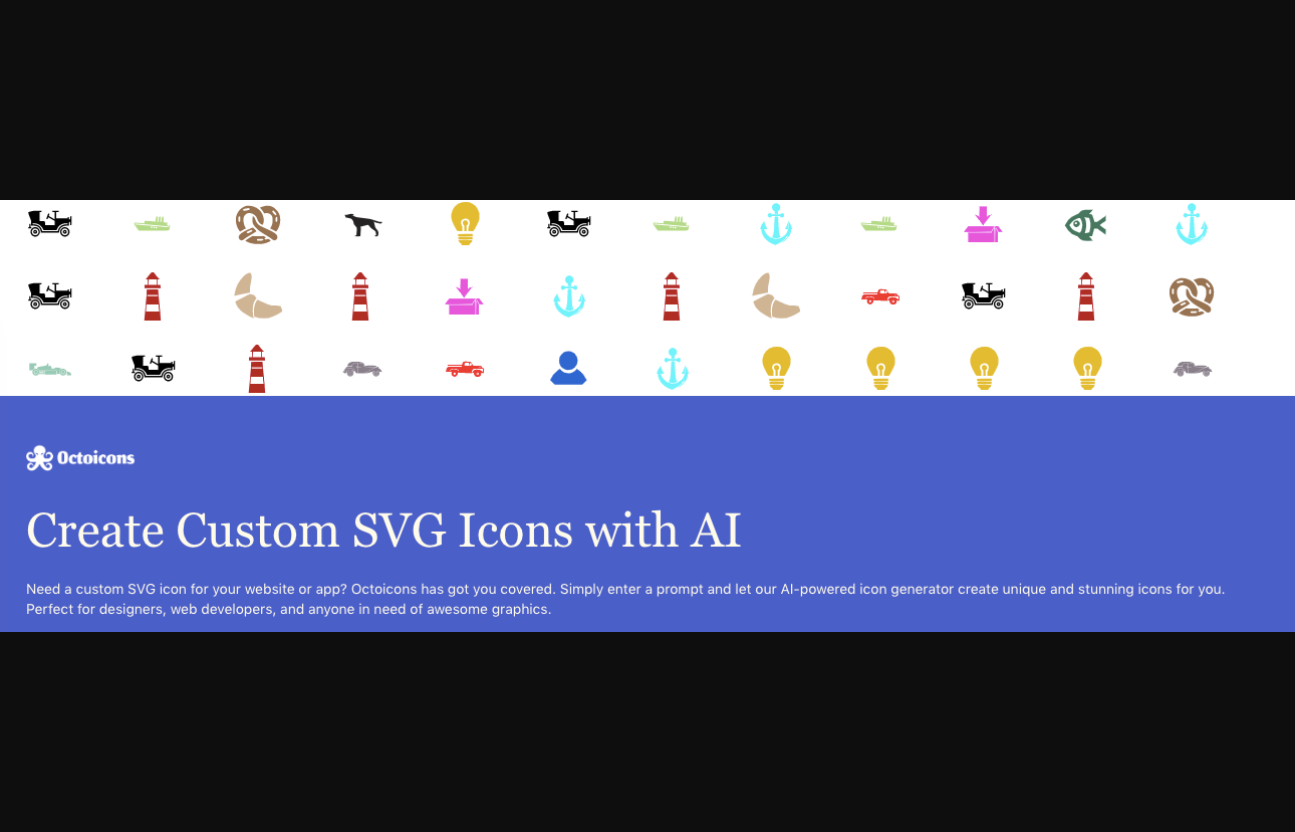 Octoicons is an advanced AI-powered tool that enables users to design exceptional, visually appealing SVG icons that are perfect for use in websites and applications. It is the ideal solution for individuals or businesses looking to bring a unique touch to their digital projects. Octoicons allows users to generate custom icons that are tailor-made to their specific requirements. SHORT DESCRIPTION: Octoicons is a cutting-edge SVG icon generator that uses AI to produce customized, visually-striking icons for websites and apps.