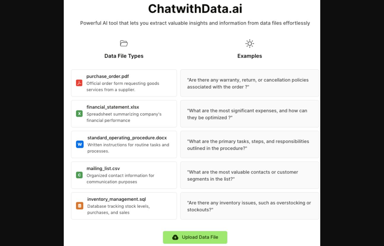 DataChat AI est un outil pratique qui extrait des informations et des idées de divers formats de fichiers grâce à une interface de chat interactive alimentée par OpenAI. Avec sa capacité à analyser les données en temps réel et à évaluer les risques liés à l'IA, DataChat AI rend les informations plus accessibles aux entreprises.