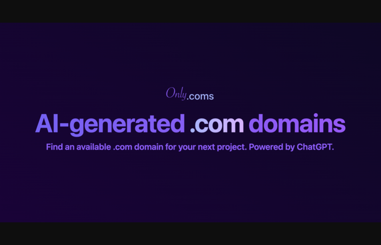 Only.Coms AI Domain Name Generator est un outil de productivité gratuit qui exploite la puissance de l'IA pour créer et recommander des noms de domaine disponibles en .com pour les projets en ligne des utilisateurs.