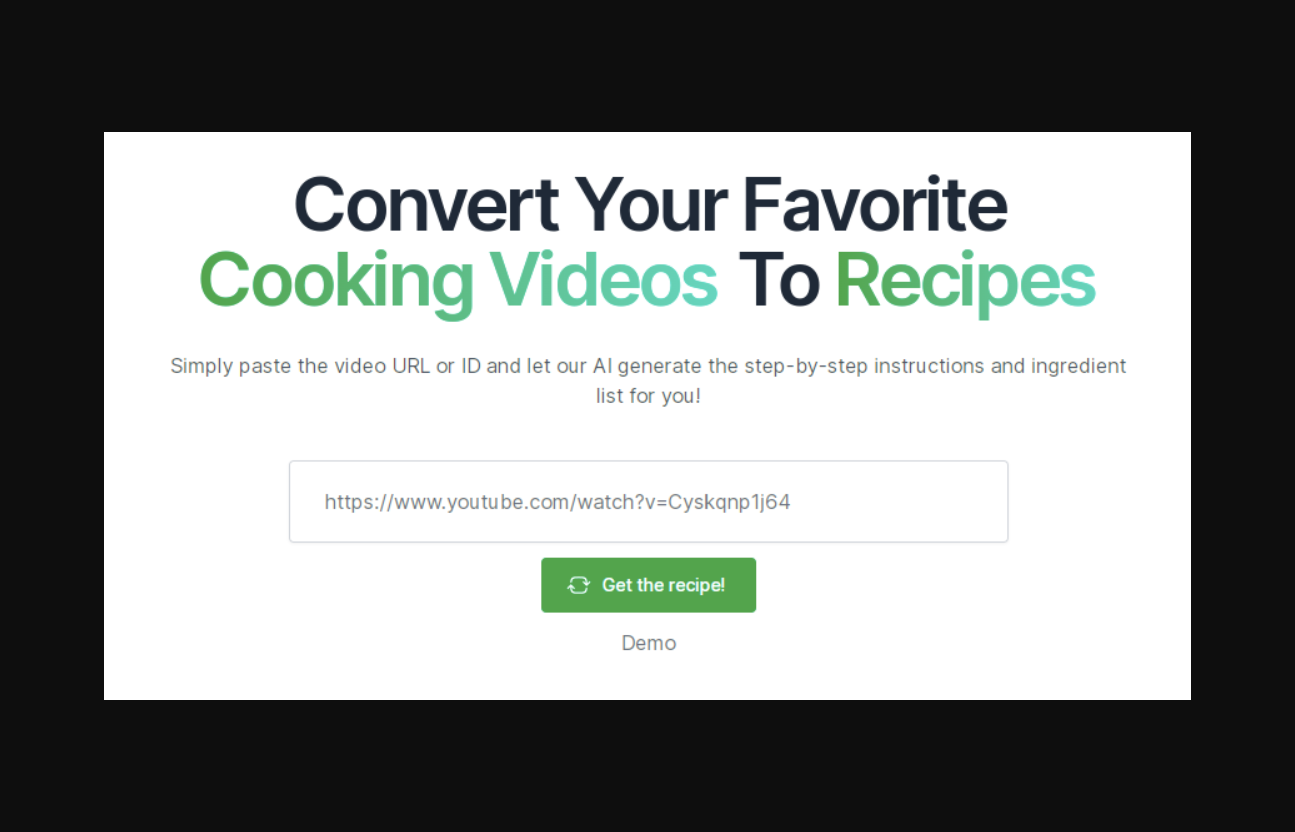 Recipe Wizard est un outil alimenté par l'IA qui convertit les vidéos de cuisine en recettes faciles à suivre, en utilisant des algorithmes avancés pour fournir des instructions précises et personnalisées. Disponible moyennant des frais, Recipe Wizard peut aider à gagner du temps et à éliminer les devinettes pour les cuisiniers amateurs cherchant à créer des plats délicieux.