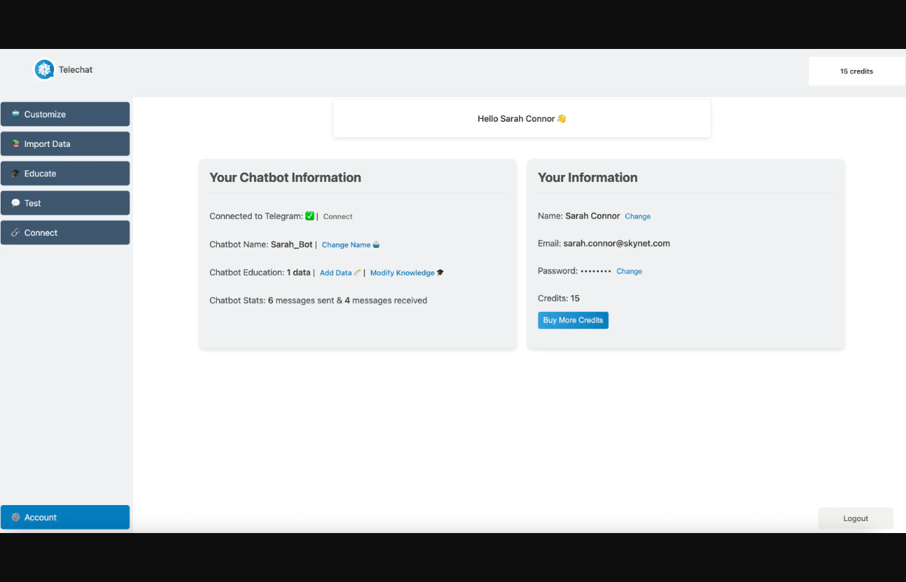 Un constructeur de chatbot alimenté par l'IA pour Telegram
