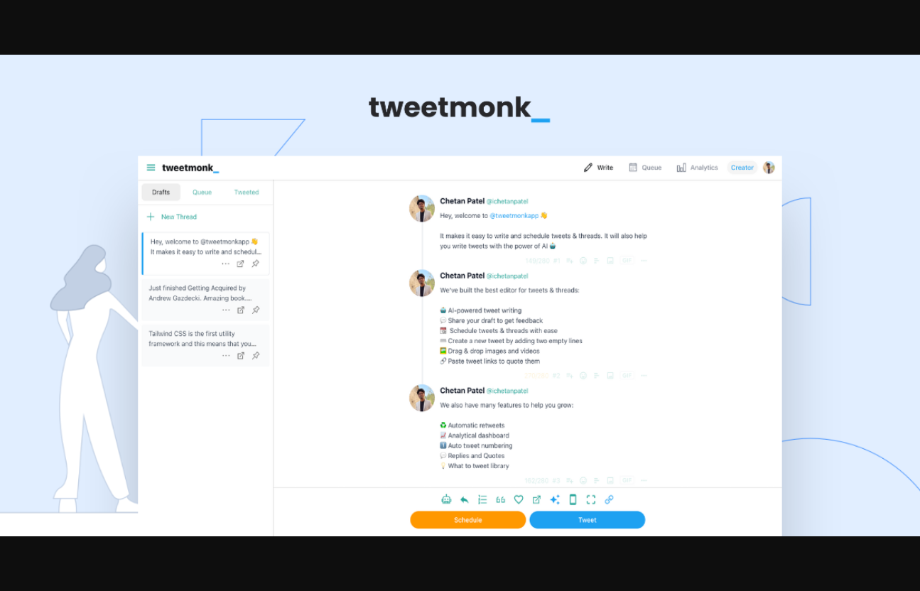 Tweetmonk est un outil innovant de gestion des médias sociaux conçu pour aider les entreprises et les particuliers à rationaliser leurs efforts de marketing sur Twitter. Utilisant une technologie puissante d'IA, Tweetmonk offre une interface conviviale qui simplifie le processus de création et de planification de tweets et de fils Twitter. Avec Tweetmonk, les utilisateurs peuvent écrire et planifier des tweets facilement et générer des hashtags pertinents pour augmenter la visibilité de leurs publications. L'éditeur intelligent alimenté par l'IA de Tweetmonk fournit des informations précieuses et des suggestions pour améliorer l'efficacité du contenu, améliorer les mesures d'engagement et optimiser les taux de conversion. Avec des exemples de tweets populaires, il inspire les utilisateurs à créer un contenu de haute qualité qui résonne avec leur public et à générer des prospects sans effort. Le système de file d'attente de Tweetmonk permet aux utilisateurs de planifier du contenu en quelques secondes et d'en augmenter la portée grâce à la planification en un clic. En tant qu'outil avancé de gestion des médias sociaux, Tweetmonk fournit des analyses robustes pour suivre les mesures d'engagement, surveiller la performance des tweets et identifier les domaines d'opportunités pour affiner la stratégie de marketing sur Twitter avec des outils alimentés par l'IA. En utilisant Tweetmonk, les entreprises et les particuliers peuvent automatiser et optimiser leurs comptes Twitter et améliorer leur présence en ligne facilement, en en faisant un excellent choix pour les professionnels cherchant à transformer leur marketing sur Twitter.