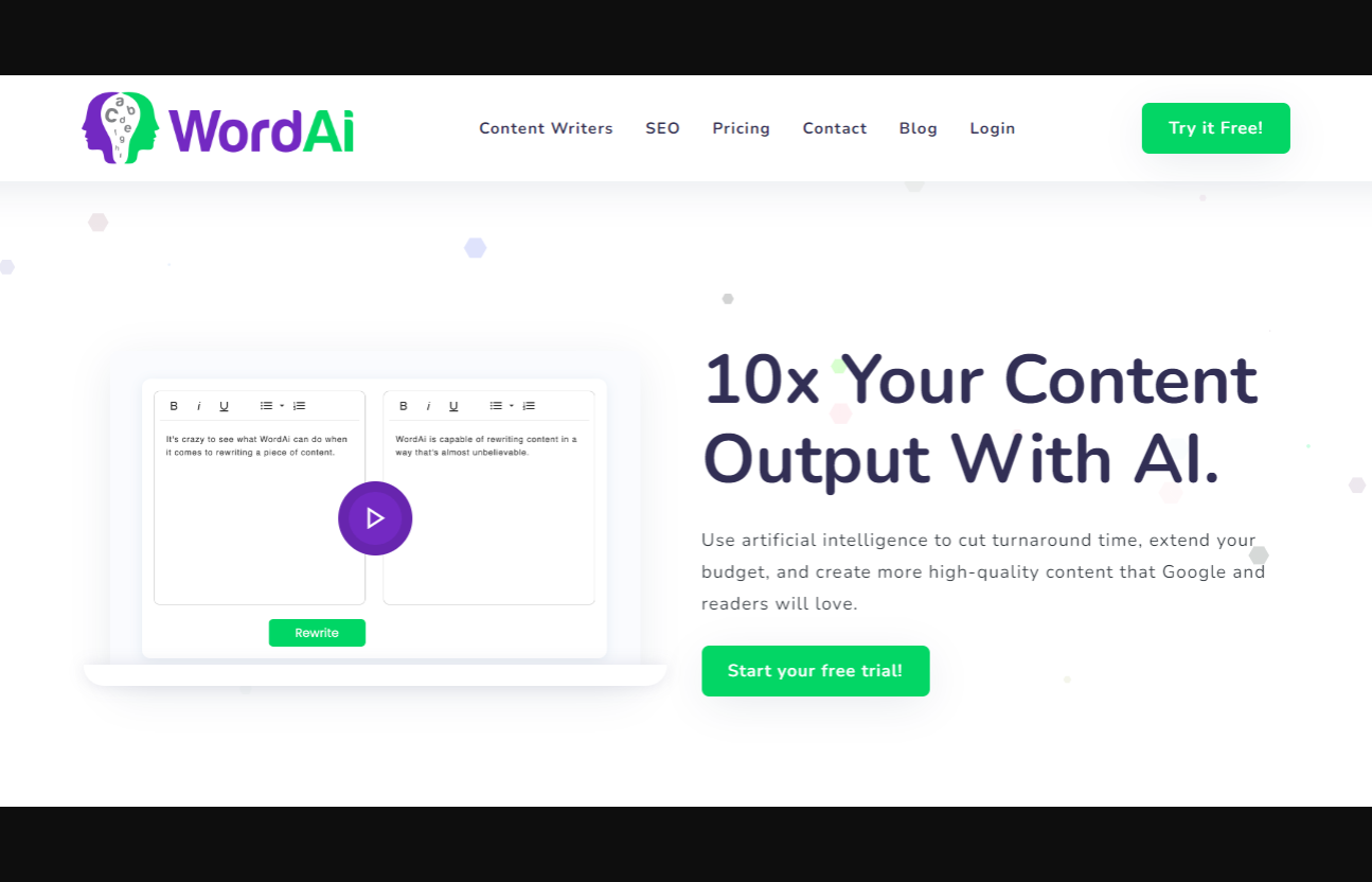 WordAi Pro est l'outil ultime de réécriture de contenu alimenté par l'IA qui vous aide à générer rapidement et facilement du contenu unique de haute qualité. Cet outil de copywriting est disponible moyennant un abonnement payant et peut être consulté via l'URL https://wordai.com.