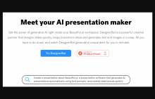 Description: AI Present is an innovative platform for creating impressive presentations. It is an AI-powered tool that uses advanced algorithms to create stunning slideshows in a matter of minutes. With its DesignerBot feature, users can create professional-quality presentations without any prior design experience. The tool employs a variety of AI techniques like natural language processing (NLP) and computer vision to optimize and enhance the content and layout of the slides. The AI Present platform also offers Smart Slide templates which provide users with a range of pre-built layouts that can be adapted to suit their content. Moreover, it provides extensive customization options, such as the ability to summarize, expand, or modify the tone of text. The AI algorithms also support the creation of visually appealing images from text, which saves users time and effort. AI Present can also analyze the users' content and suggest images or elements that can be added to the slideshow to make it more engaging. AI Present is designed not only for its productivity but also to align with the legal, ethical and social standards of AI technology. The tool employs strict privacy measures to ensure that the users' data is protected, and the AI algorithms used are transparent and interpretable.