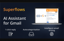Description: Superflows est une extension Gmail innovante alimentée par l'IA conçue pour révolutionner la manière dont vous gérez votre boîte de réception. Il s'agit d'un assistant e-mail capable de générer des réponses en un clic et d'offrir des réponses d'e-mail personnalisées qui s'alignent sur votre flux de travail quotidien. L'outil est également doté d'un système avancé de catégorisation des e-mails qui trie rapidement vos e-mails, vous permettant de répondre plus rapidement aux messages critiques. Superflows donne la priorité à la vie privée et à la protection des données de l'utilisateur, ce qui en fait un choix de confiance pour les utilisateurs conscients de la vie privée. Superflows est actuellement en version bêta privée et devrait transformer la manière dont les gens gèrent la communication par e-mail.