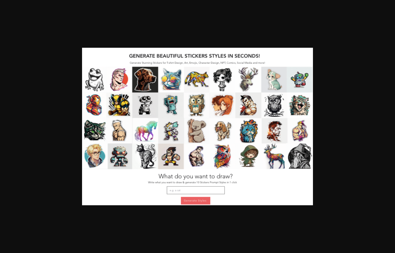 Create 10 unique sticker prompt styles instantly with AI-Generated Sticker Prompts, a free generative art tool designed for various creative industries.
