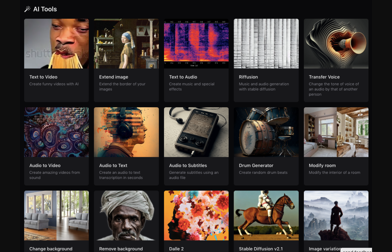 Apart from these, Audio to Text produces automatic transcriptions from audio inputs while Audio to Subtitles generates subtitles from an audio file. Drum Generator creates a variety of random drum beats, and Modify Room enables users to modify the interior of a room. Built-in AI algorithms simplify the process of changing the background of an image with Change Background, remove the background with Remove Background, create fascinating product ads, and turn old images into new ones with Restore Image.