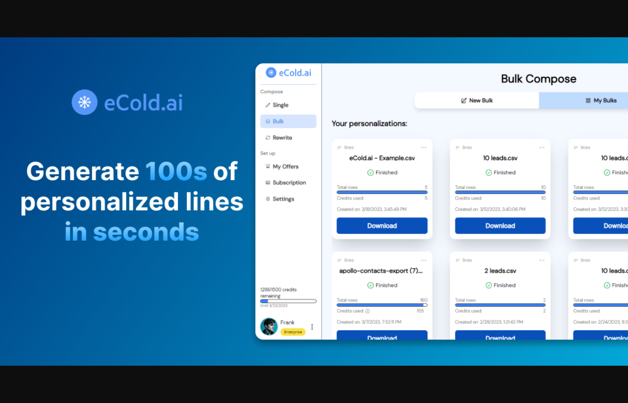 eCold.ai is a revolutionary marketing tool that automates cold email personalization. It is powered by advanced AI algorithms and allows users to create personalized lines in seconds. While caution is recommended when using AI, eCold.ai is still an incredibly useful marketing investment as it is 6X cheaper than hiring a VA and can help improve reply rates. So, if you're looking to streamline your marketing efforts and take your email campaigns to new heights, eCold.ai is the perfect tool for you.