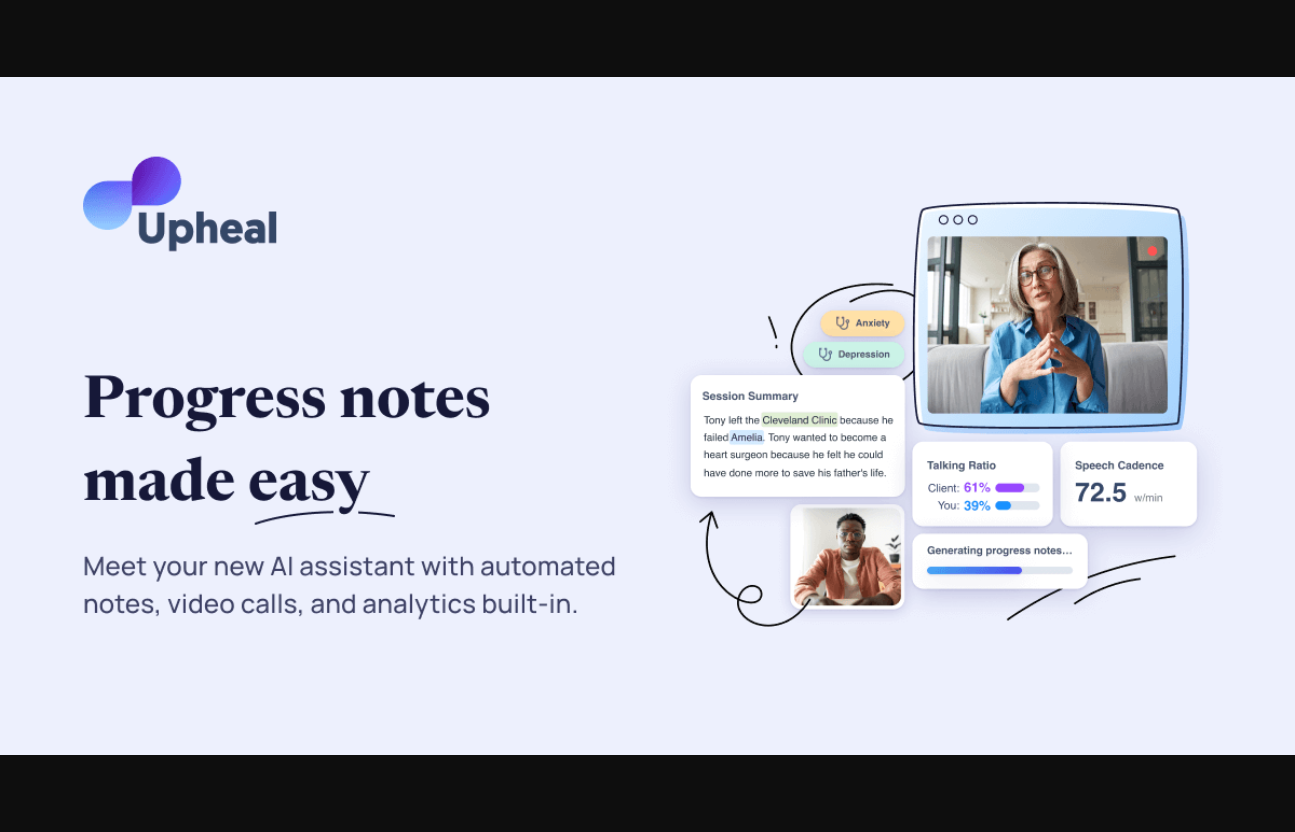 Upheal is the ultimate tool for mental health professionals that automates note-taking and offers secure video conferencing. It is powered by AI and provides analytics on patient progress. It's HIPAA and GDPR compliant and therapists can benefit from it for free by participating in the Early Access program.