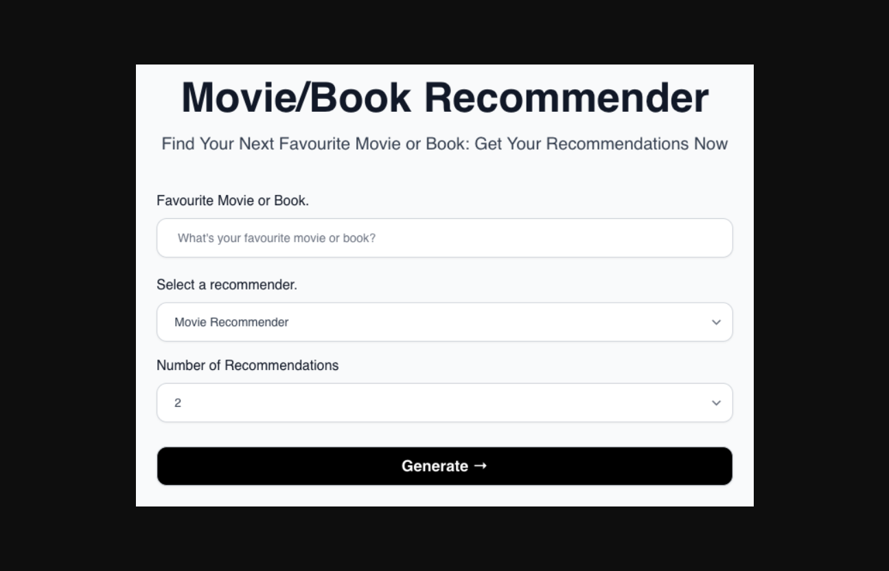 AI-Supported Media Suggester est un outil innovant qui fournit des recommandations de médias personnalisées aux utilisateurs. Il comprend deux options : un recommandateur de films et un recommandateur de livres. L'outil est alimenté par une Intelligence Artificielle avancée, comprenant des algorithmes de traitement de langue naturelle et d'apprentissage automatique. Cela assure que les recommandations fournies sont à la fois précises et pertinentes. Les utilisateurs peuvent choisir le nombre de recommandations qu'ils souhaitent générer, et l'outil fournira des suggestions en fonction de leur entrée. Il prend également en considération leur historique de visualisation et de lecture, ainsi que leurs préférences. De plus, l'outil comprend une fonction d'évaluation des risques qui analyse les risques associés à l'Intelligence Artificielle. Développé par Dapo Adedire, AI-Supported Media Suggester est basé sur un modèle de Vercel AI Templates, garantissant sa stabilité et sa fiabilité. DESCRIPTION COURTE: AI-Supported Media Suggester est un outil qui utilise des algorithmes d'Intelligence Artificielle avancés, y compris la NLP et l'apprentissage automatique, pour générer des recommandations personnalisées de films et de livres pour les utilisateurs. L'outil prend en compte les préférences de l'utilisateur, l'historique de visualisation/lecture, tout en analysant les risques associés à l'IA. Développé par Dapo Adedire, il garantit des suggestions fiables et précises et est basé sur des modèles stables d'IA de Vercel. Offert en tant que service payant, il peut être consulté sur https://ai-supported-media-suggester.vercel.app. TYPE: Pour le plaisir PRICING: Payant