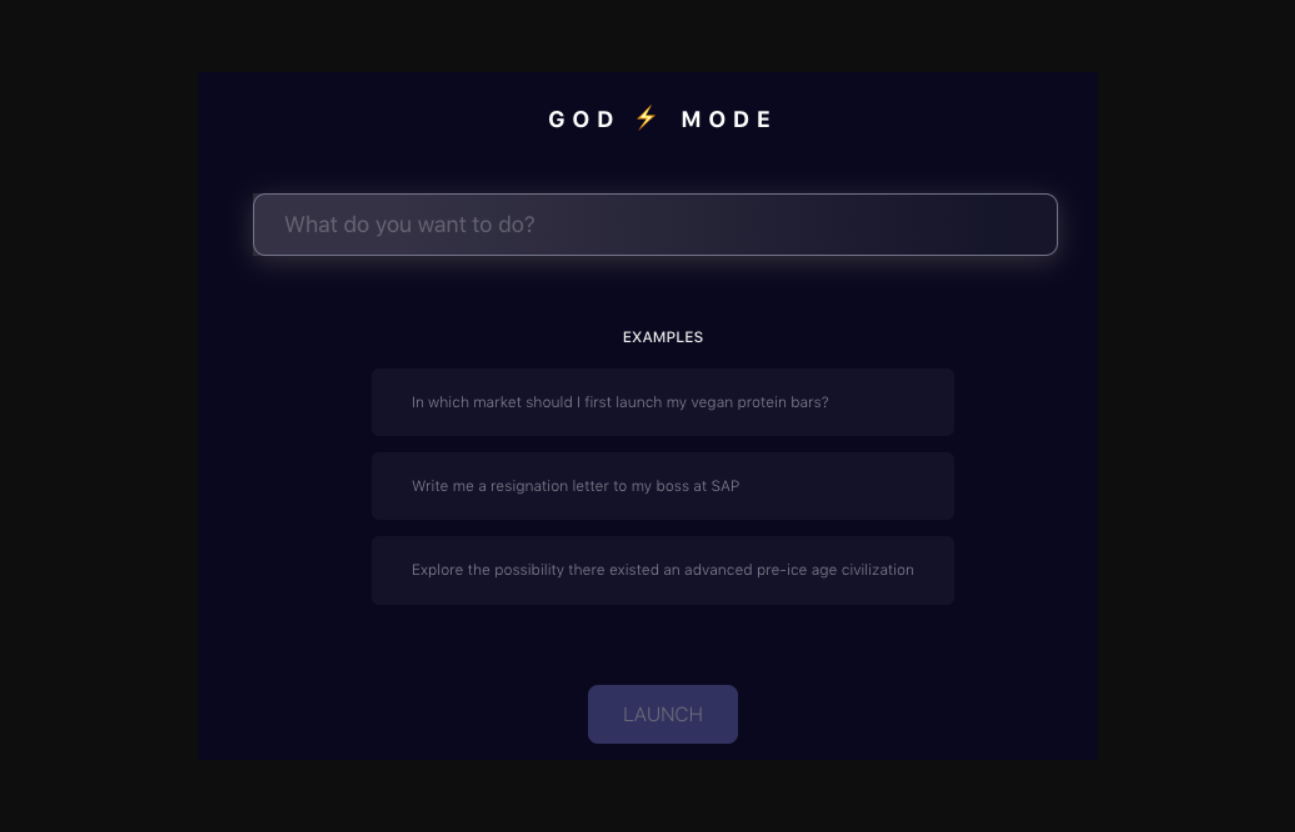 Godmode est une interface utilisateur intuitive qui facilite l'interaction avec le modèle ChatGPT. Que vous cherchiez à générer du texte, répondre à des questions ou simuler des conversations avec un assistant virtuel, Godmode est là pour vous aider. En tant qu'outil d'IA, il offre une couche supplémentaire de commodité en permettant une interaction facile avec ChatGPT et ses ensembles de données associés. Le meilleur de tout? C'est complètement gratuit à utiliser!