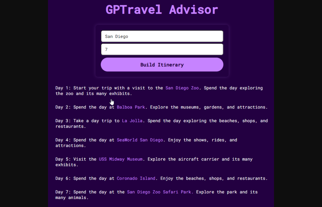 GPT Travel Advisor est un outil d'IA de pointe qui permet aux utilisateurs de créer des itinéraires de voyage pour n'importe quelle ville dans le monde en quelques secondes seulement. Cet outil utilise les dernières avancées en intelligence artificielle et en traitement du langage naturel pour fournir aux utilisateurs les meilleures recommandations pour leurs plans de voyage. Avec GPT Travel Advisor, vous pouvez obtenir des recommandations personnalisées sur les meilleurs endroits à visiter dans n'importe quelle ville, où manger, où séjourner et quelles activités à faire. L'outil prend également en compte votre budget, vos préférences et votre style de voyage, de sorte que votre itinéraire convient parfaitement à vos besoins.