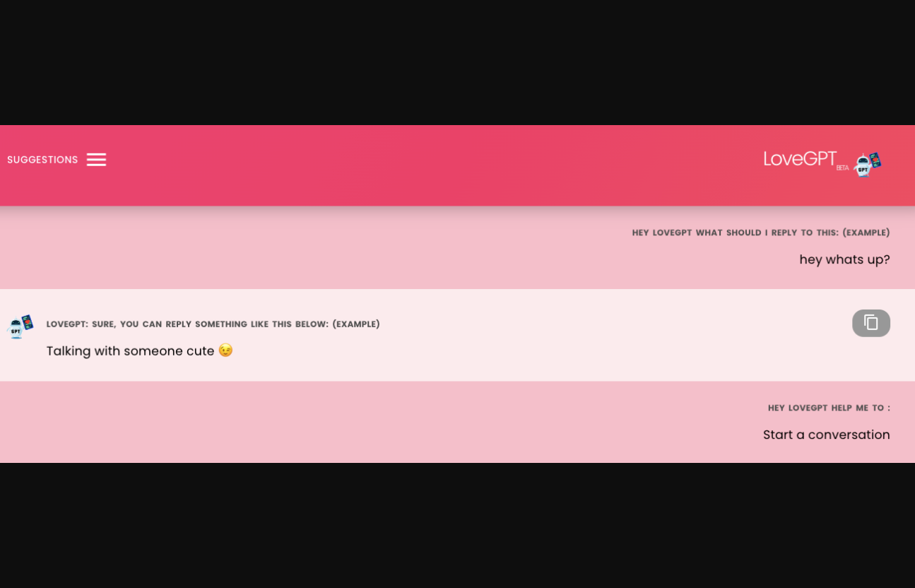 LoveGPT est un outil innovant qui utilise l'Intelligence Artificielle (IA) pour offrir des suggestions sur la façon de répondre à divers messages. Ce logiciel incroyable alimenté par l'IA fournit des suggestions de conversation personnalisées, ainsi que des idées pour envoyer des messages et même proposer à quelqu'un de prendre un café. LoveGPT offre une solution unique au problème de la création de réponses appropriées à différents types de messages. C'est un outil efficace et facile à utiliser qui aide les individus à améliorer leurs compétences d'écriture et de conversation tout en réduisant le temps et les efforts nécessaires pour trouver des réponses personnalisées. Cependant, comme il s'appuie sur l'IA, il est essentiel que les utilisateurs soient conscients des risques associés à l'Intelligence Artificielle tels que la confidentialité et la sécurité des données. LoveGPT est un outil axé sur les chats, ce qui en fait une plate-forme idéale pour les personnes qui souhaitent améliorer leurs capacités de construction de messages. Le prix de LoveGPT varie en fonction de la durée et du niveau d'utilisation. Pour en savoir plus sur cet outil de chat révolutionnaire alimenté par l'IA, visitez le site Web de LoveGPT sur https://lovegpt.co.in.